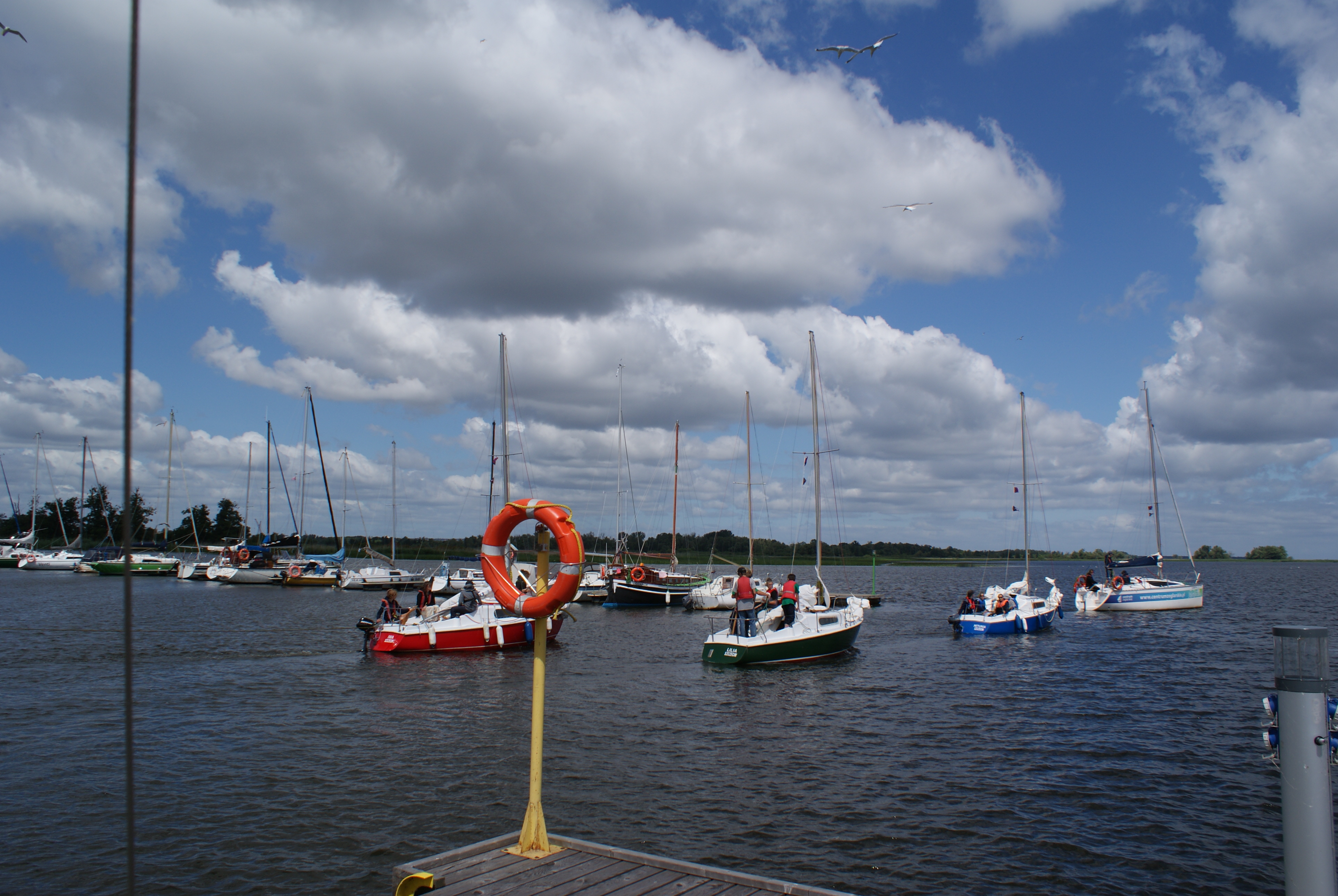 Zaraz na początku potwierdziła się stara prawda, że pogodę należy chwalić po zakończeniu rejsu. Już pierwszego dnia w drodze do Trzebieży, na Roztoce Odrzańskiej, okazało się że musimy zmienić plany i schronić się w Lubczynie. Dopiero następnego dnia udało się nam stamt dopłynąć do Trzebieży. Później było już łatwiej i bez kłopotów dotarliśmy do Nowego Warpna. W pięknym, zabytkowym ratuszu przyjął na nas burmistrz Jarosław Burba, a wieczorem w marinie mieliśmy okazję posłuchać Kazika Olszanowskiego, który mówił o przyrodzie Zalewu.
