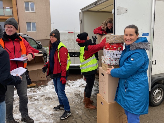 Oprócz stałych transportów wysyłanych z pomocą do Ukrainy, nie zapominamy o naszych podopiecznych z Ukrainy w Polsce, w szczególności o ich dzieciach. W niedzielę 4 grudnia 2022 roku dzięki inicjatywie Ani Murawskiej z RC Świnoujście w ramach akcji #Weinachtspaeckchenkonvoi (odpowiednik naszej Świątecznej paczki) dotarł do "naszych ukraińskich" dzieci konwój z Niemiec ze świątecznymi paczkami. Pilotowany przez Alexandra Heinelta z RC Warszawa Goethe, przywiózł każdemu dziecku starannie przygotowane paczki zgodnie z jego wiekiem i płcią. Na miejscu, w Dębinie, na Alexandra i jego grupę czekaliśmy w rozszerzonym gronie, bo oprócz nas z RC Szczecin - Prezydent Roman Łakomiak, skarbnik Luby Synak z żoną Ewą i Leszek Zdawski) był też Darek Bujniewicz z RC Warszawa Goethe i Grzegorz Kotyński z RC Stargard.