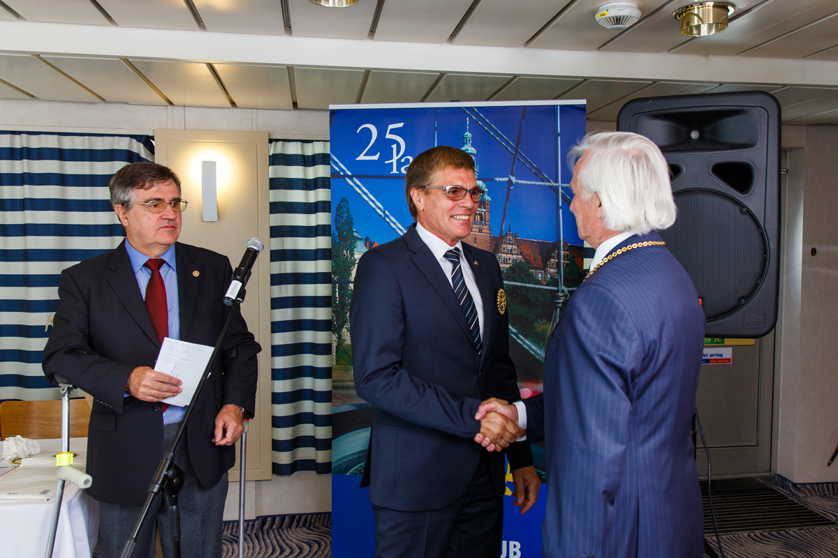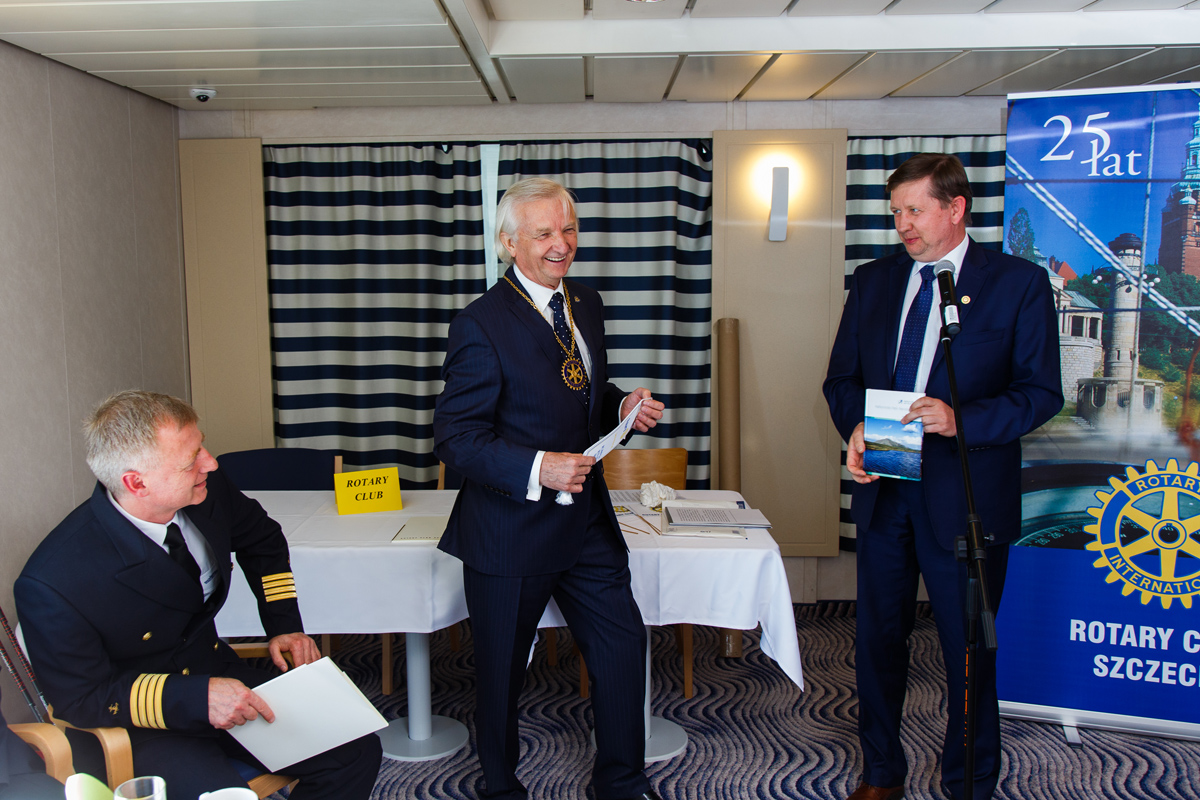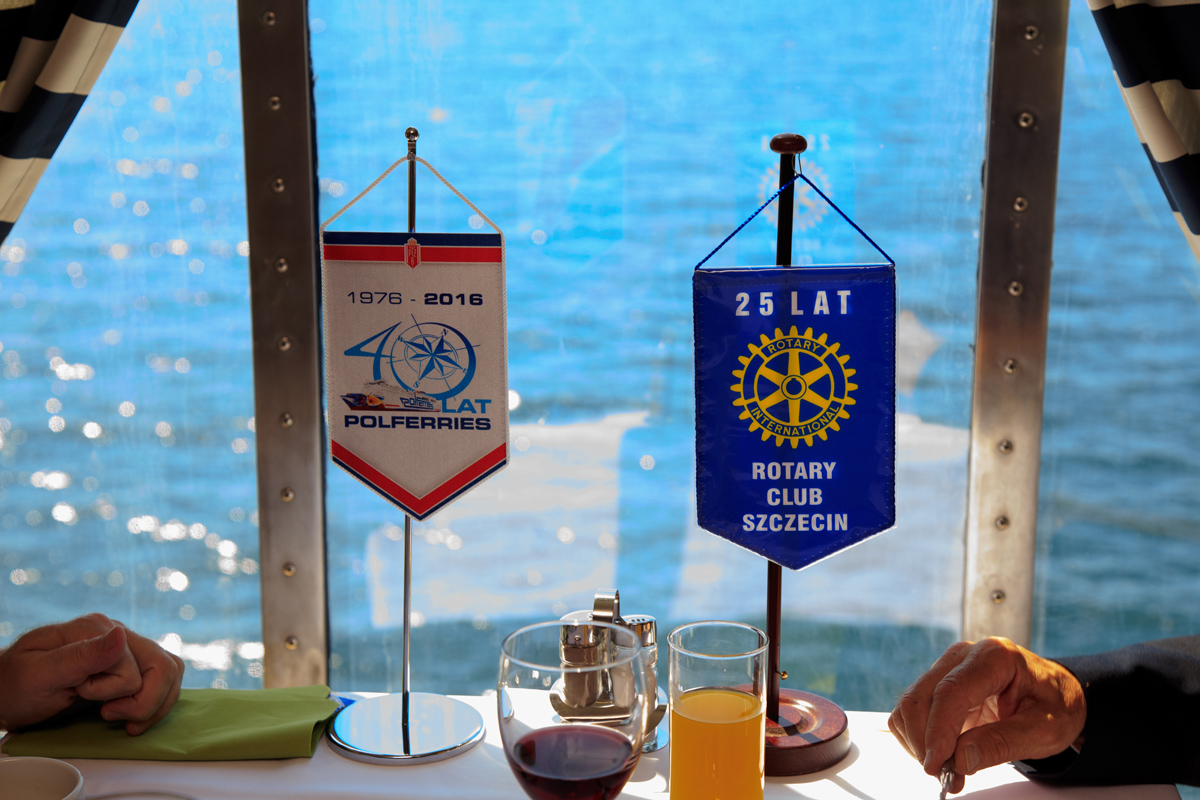 Po ponownym zaokrętowaniu na promie i toalecie, spotkaliśmy się w wydzielonym aneksie lokalu restauracyjnego na uroczystości przekazania władzy – prezydentury Rotary Club Szczecin.