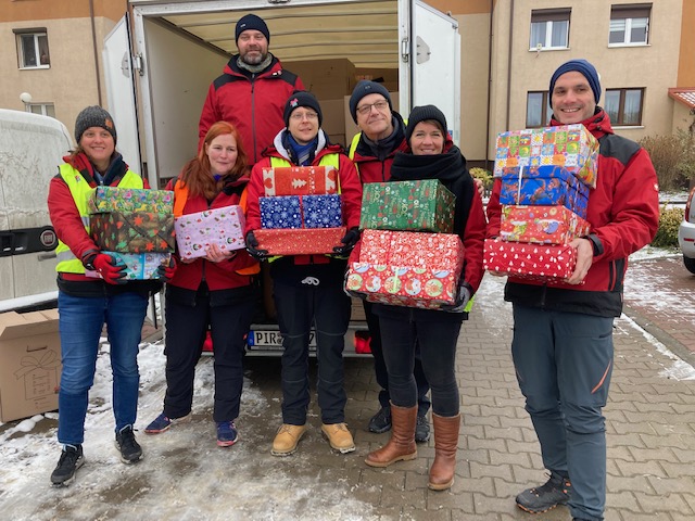 Oprócz stałych transportów wysyłanych z pomocą do Ukrainy, nie zapominamy o naszych podopiecznych z Ukrainy w Polsce, w szczególności o ich dzieciach. W niedzielę 4 grudnia 2022 roku dzięki inicjatywie Ani Murawskiej z RC Świnoujście w ramach akcji #Weinachtspaeckchenkonvoi (odpowiednik naszej Świątecznej paczki) dotarł do "naszych ukraińskich" dzieci konwój z Niemiec ze świątecznymi paczkami. Pilotowany przez Alexandra Heinelta z RC Warszawa Goethe, przywiózł każdemu dziecku starannie przygotowane paczki zgodnie z jego wiekiem i płcią. Na miejscu, w Dębinie, na Alexandra i jego grupę czekaliśmy w rozszerzonym gronie, bo oprócz nas z RC Szczecin - Prezydent Roman Łakomiak, skarbnik Luby Synak z żoną Ewą i Leszek Zdawski) był też Darek Bujniewicz z RC Warszawa Goethe i Grzegorz Kotyński z RC Stargard.