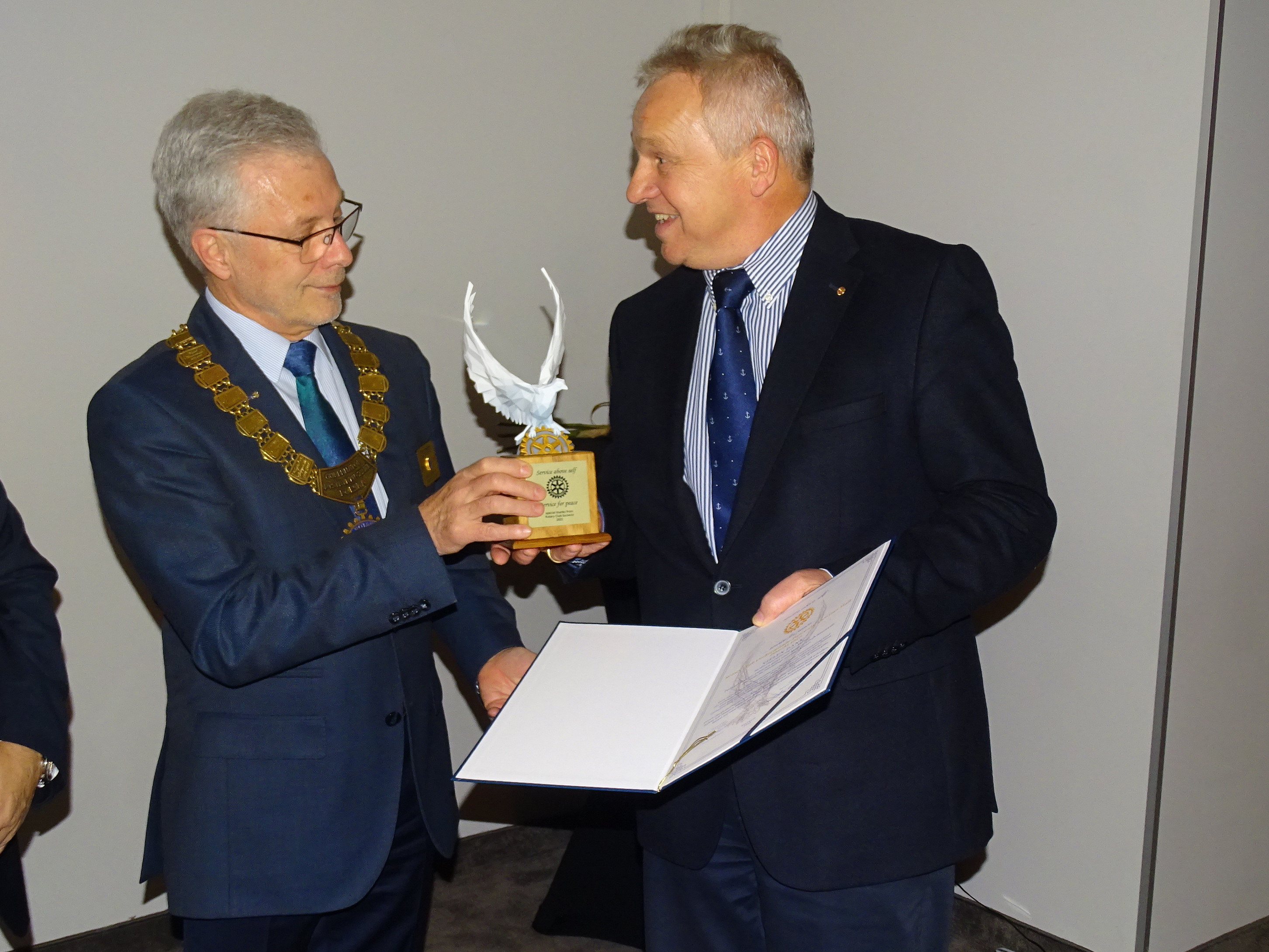 W zeszłym tygodniu, tradycyjnie przed Świętami Bożego Narodzenia, zorganizowaliśmy Wigilię Rotariańską, w której udział wzięli, między innymi, Gubernator Dystryktu 1940 - Jessika Schweda z RC Bernau bei Berlin, nasz Gubernator Piotr Jankowski z RC Koszalin oraz rotarianie z Niemiec. W trakcie Wigilii sporo czasu poświęciliśmy pomocy Ukrainie. Była zatem okazja, żeby podziękować klubom Rotary wspierającym nas w tej pomocy. Symboliczne Gołębie Pokoju wręczyliśmy przedstawicielom poniższych klubów: