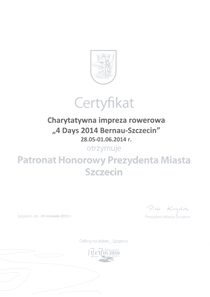 Jeden z etapów, miał swój finał 30 maja w Szczecinie. Imprezę objął swoim patronatem honorowym Prezydenta Miasta, a dodatkowo rangę wydarzenia podkreśliła szczecińska policja Szczecina, poprzez efektowną eskortę kolarzy, tworzoną przez 2 motocykle i 3 radiowozy. Skrzyżowania były zamknięte dla ruchu samochodowego, a ruchem kierowały policjantki w białych rękawiczkach. Jak ładnie to ujął kol. Marek Wróblewski – „jednym słowem pełna parada” (jak należy rozumieć jest to jedno słowo złożone).