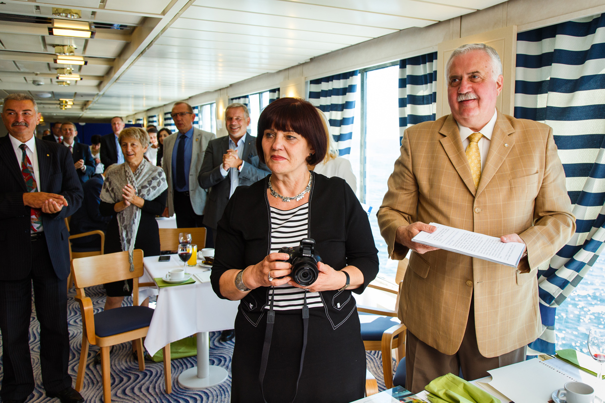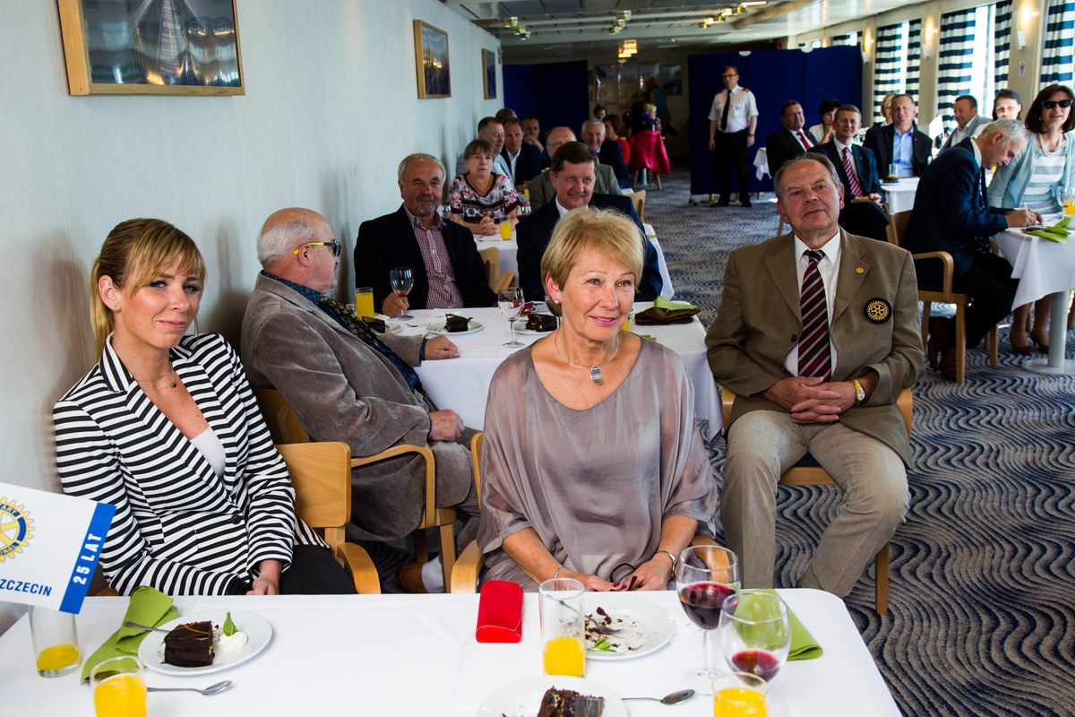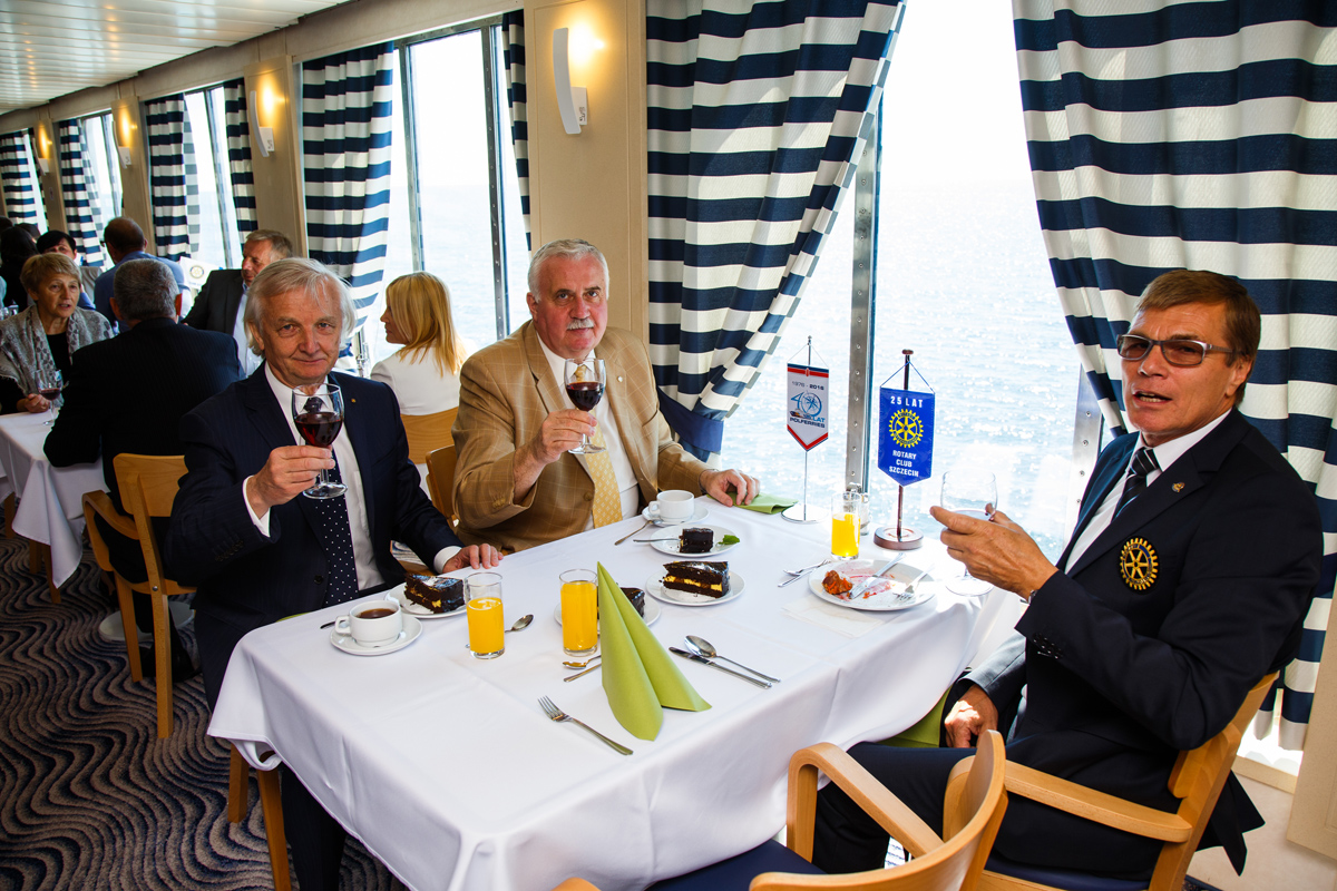 Po ponownym zaokrętowaniu na promie i toalecie, spotkaliśmy się w wydzielonym aneksie lokalu restauracyjnego na uroczystości przekazania władzy – prezydentury Rotary Club Szczecin.